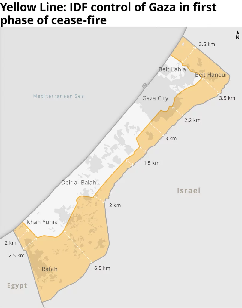 In recent weeks, the Yellow Line has advanced deeper into Gaza’s populated areas, funneling civilians into a tightening geographic area. Residents and humanitarian agencies say the boundary shifts unpredictably, often overnight, and sometimes without any public notice, rendering once-accessible neighborhoods lethal. For residents, the line has become a shifting frontier between life and death.