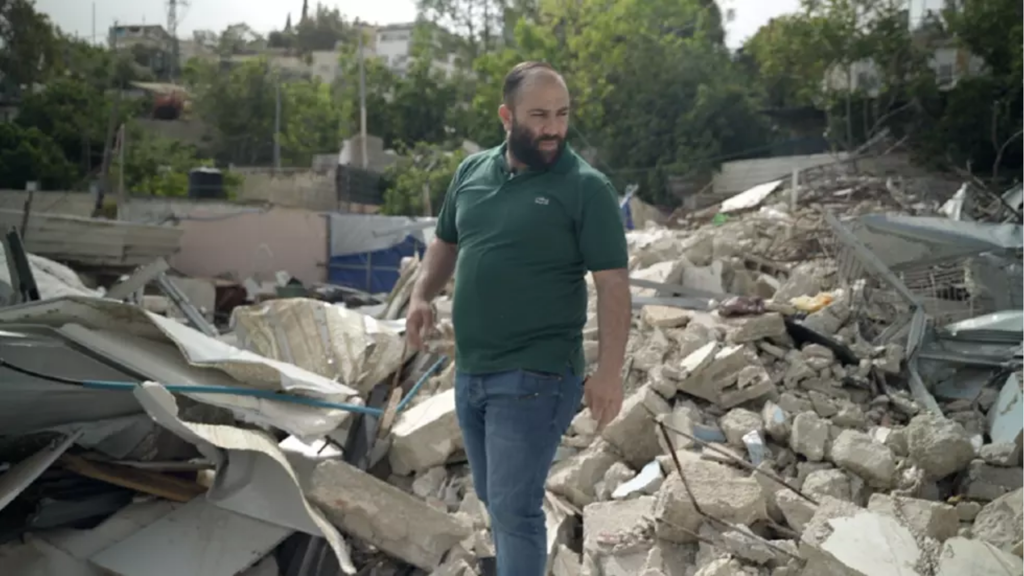 - Photo : À Silwan, Quteiba Odeh regarde la maison familiale tombée sous le coup d’un avis de destruction partielle émanant de la municipalité de Jérusalem. © Amira Souilem / RFI
