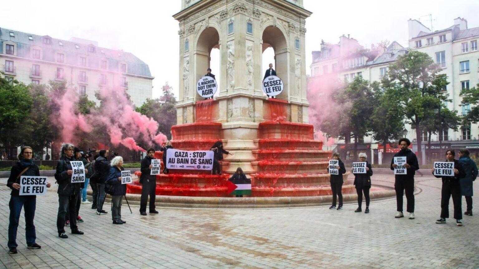 Ce matin, Greenpeace France, Oxfam France, Amnesty International France, Médecins du Monde et Ekō ont mené une action symbolique au cœur de la capitale versant plusieurs litres de colorant alimentaire rouge dans le bassin de la fontaine des Innocents, dans le quartier des Halles à Paris. Cette opération vise à dénoncer la lenteur d’action de la France face à l’urgence humanitaire absolue dans laquelle se trouve la population de Gaza aujourd’hui.